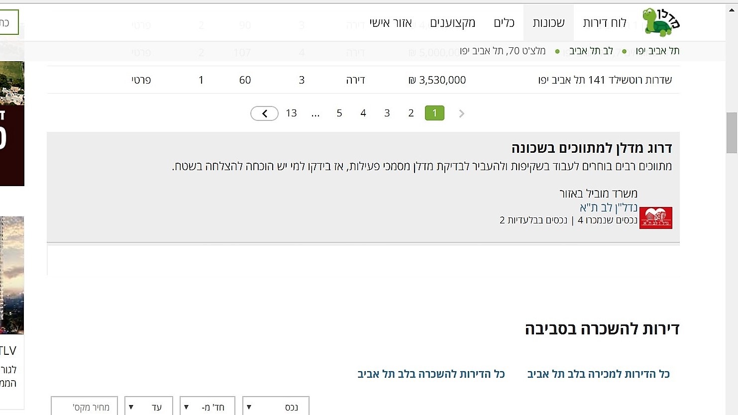 נדל”ן לב ת”א הוא מהמובילים בתחום הנדל”ן – ובפרט באזור תל אביב. משרדנו זוכה בכל שנה להיות משרד התיווך המוביל בתל אביב ובשכונת לב העיר בפרט, זאת – על פי אתר “מדל”ן”. אתר מדל”ן גם העניק למשרדנו את תו השקיפות לשנת 2017, תו המציין את התנהלות המשרד באופן מדוייק ושקוף. אנו רואים בהתנהלות מקצועית, אמינה ונאמנה ללקוחות חשיבות עליונה.